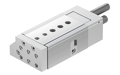 Festo pneumatic slides are pneumatic guided cylinders with a particularly compact design. To guarantee optimal cycle times and minimise the vibrations transferred to the machine, we offer pneumatic slides in a number of sizes with a wide range of mounting and cushioning options. Festo mini slides achieve a repetition accuracy of 0.01 mm.
