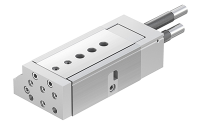 Festo pneumatic slides are pneumatic guided cylinders with a particularly compact design. To guarantee optimal cycle times and minimise the vibrations transferred to the machine, we offer pneumatic slides in a number of sizes with a wide range of mounting and cushioning options. Festo mini slides achieve a repetition accuracy of 0.01 mm.