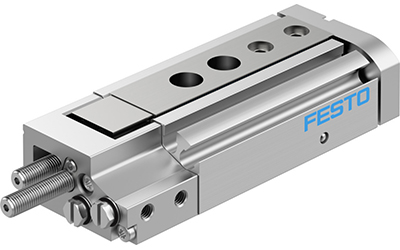 Festo pneumatic slides are pneumatic guided cylinders with a particularly compact design. To guarantee optimal cycle times and minimise the vibrations transferred to the machine, we offer pneumatic slides in a number of sizes with a wide range of mounting and cushioning options. Festo mini slides achieve a repetition accuracy of 0.01 mm.